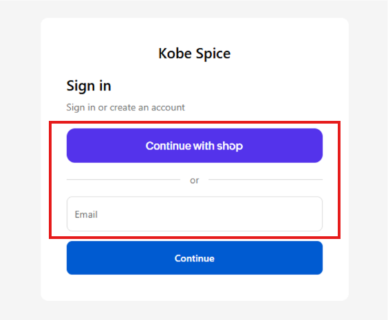 New: Log in with your email address and 6-digit login code, or Shop account.